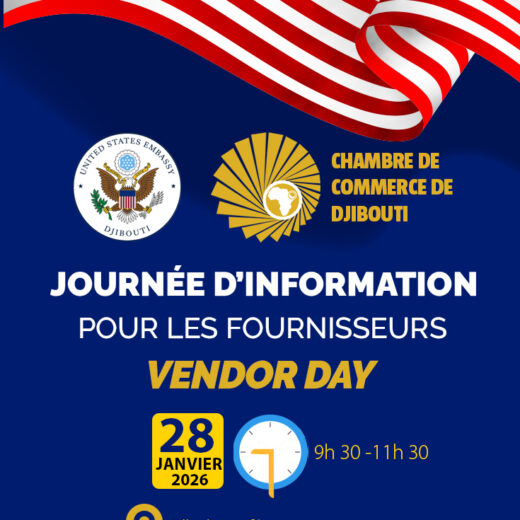 La Chambre de Commerce de Djibouti (CCD), en partenariat avec l’Ambassade des États-Unis à Djibouti, organise une matinée d’information intitulée « Vendor Day », destinée