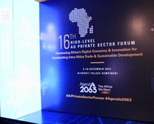 Le 16ᵉ Forum de Haut Niveau du Secteur Privé de l’Union africaine, co-organisé avec le Secrétariat de la ZLECAf, a ouvert ses portes le lundi 8 décembre à Djibouti Palace Kempinski. Ce sommet, qui s’est tenu du 8 au 10 décembre, a rassemblé des acteurs gouvernementaux, des décideurs politiques, des dirigeants économiques, des partenaires techniques, des innovateurs, des experts, des entrepreneurs ainsi que des représentants du secteur privé issus de l’ensemble du continent africain.