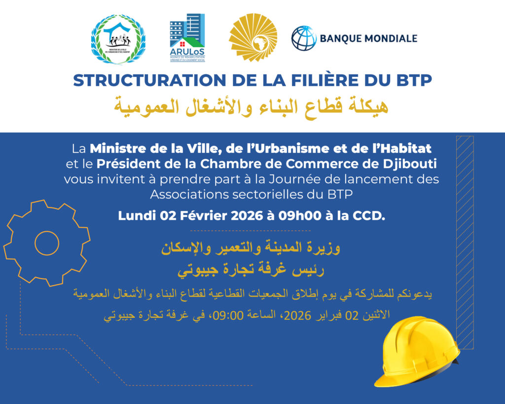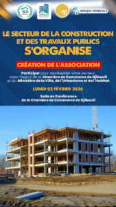 Convaincus qu’un secteur dynamique repose sur une organisation solide, les professionnels du secteur du Bâtiment et des Travaux Publics (BTP) à Djibouti, se réuniront le lundi 02 février 2026 pour la structuration de leur secteur.